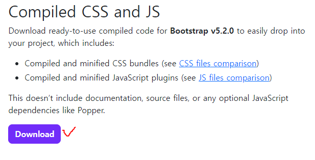INSTALLED_APPS = ( # ... 'django_bootstrap5', # ... )2. compiled CSS and JS download (1) Bootstrap 공식 사이트에서 Compiled CSS and JS 파일을 download