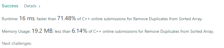 int removeDuplicates(vector<int>& nums) { int j =0; for(int i=1; i<nums.size(); i++) { if(nums[j] != nums[i]) { j++; swap(nums[i],nums[j]); } } return (j+1); }728x90'Coding Test > LeetCode' 카테고리의 다른 글