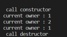 std::shared_ptr<Person> people = std::make_shared<Person>("HI", 28); std::cout << "current owner : " << people.use_count() << std::endl; auto Jessi = people; std::cout << "current owner : " << people.use_count() << std::endl; Jessi.reset(); //shared_ptr인 Jessi를 해제함. std::cout << "current owner : " << people.use_count() << std::endl;