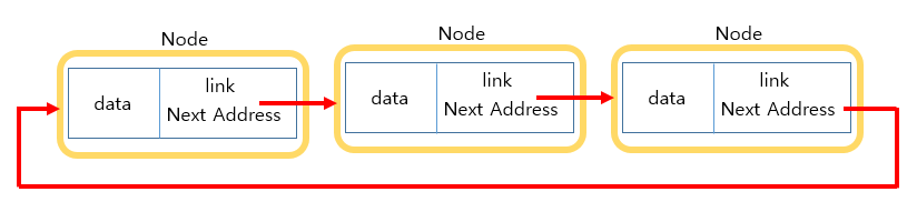 : 마지막 노드가 다시 처음 노드를 가리킴.