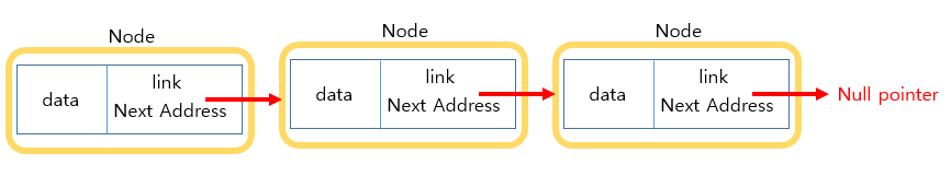 시작(주소) - 연결(link) - 끝(null pointer or circular)