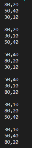bool cmp(vector<int> &a, vector<int>& b){ if(a[0] == b[0]){ return a[1] > b[1]; } else{ return a[0] > b[0]; } } int main(){ vector<vector<int>> vec = { {80, 20}, {50, 40}, {30, 10} }; int k = 80; sort(vec.begin(), vec.end(), cmp); do{ cout << vec[0][0] << "," << vec[0][1] << endl; cout << vec[1][0] << "," << vec[1][1] << endl; cout << vec[2][0] << "," << vec[2][1] << endl; cout << endl; }while(prev_permutation(vec.begin(), vec.end())); return 0; }