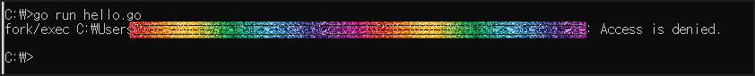 go파일 실행 저는 이런 오류가 나왔습니다. Access is denied. 관리자 권한의 cmd로 명령어를 실행했는데 말이죠...