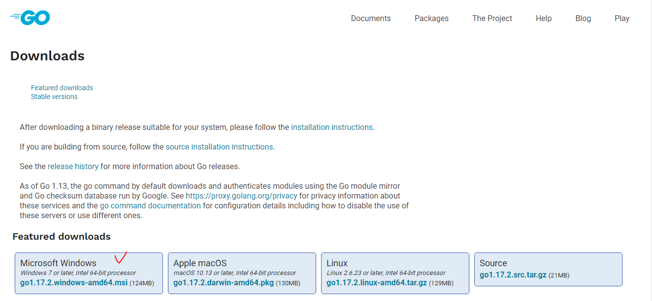 Downloads After downloading a binary release suitable for your system, please follow the installation instructions. If you are building from source, follow the source installation instructions. See the release history for more information about Go releases