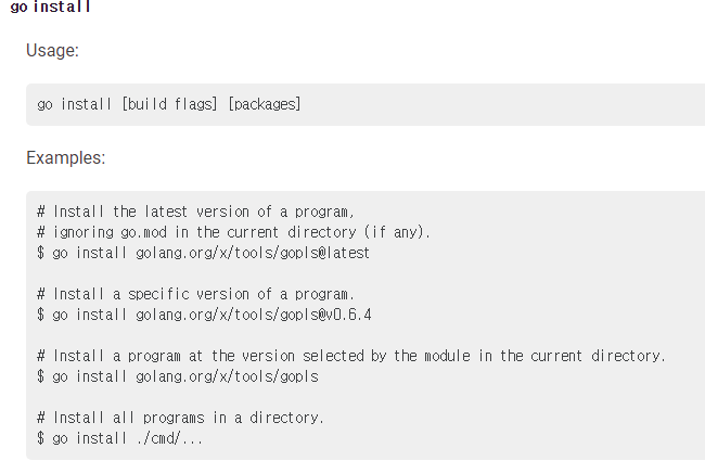 go install을 사용해서 다시 설치를 해보겠습니다. 옵션 사용법은 golang 페이지에 잘 나와있습니다~
