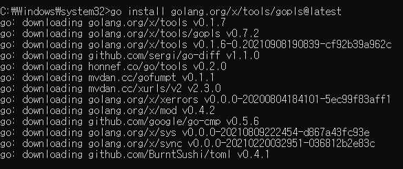 cmd에 "go install golang.org/x/tools/gopls@latest" 명령어를 입력합니다.