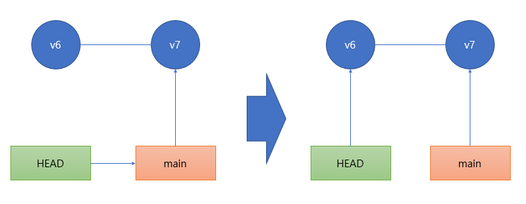실제로는 v7이 사라진 것은 아닙니다. main이 v6를 바라보게 되면서 v7은 삭제한 것과 같은 효과를 얻을 수 있게 됩니다.