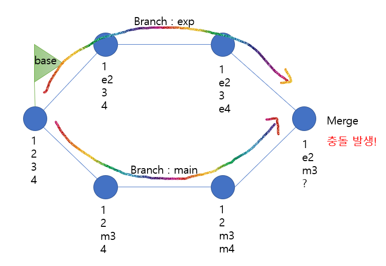 $ git checkout [branch] //git checkout main $ git merge [branch] //git merge exp충돌