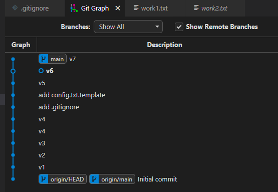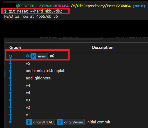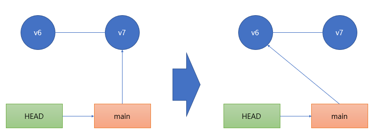 ex) 아래와 같은 상태에서 reset 명령어를 사용하여 v7 에서 v6상태로 옮기고 싶습니다.