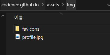 프로필로 사용하고 싶은 사진을 /assets/img 경로에 위치시킵니다.