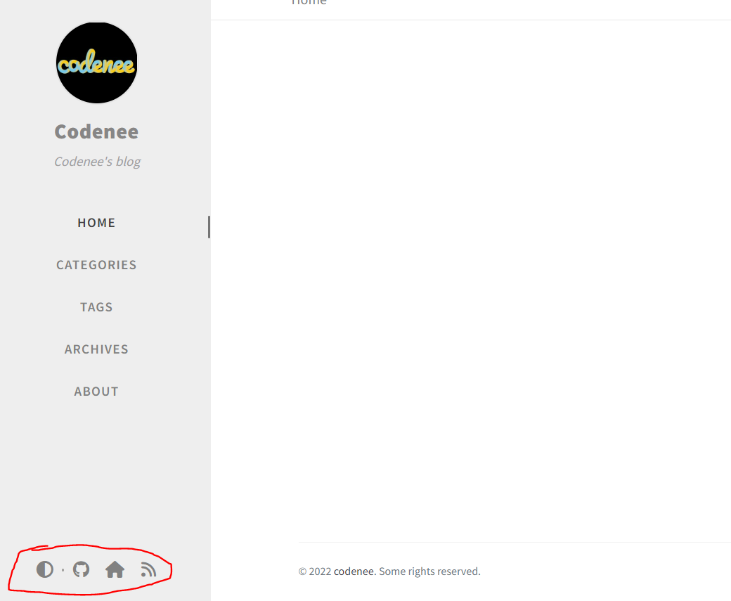 lang: en timezone: Asia/Seoul title: Codenee # the main title tagline: Codenee's blog # it will display as the sub-title url: 'https://codenee.github.io' github: username: codenee # change to your github username twitter: username: codenee # change to your twitter username social: name: codenee email: example@domain.com # change to your email address3. footer 파일 수정