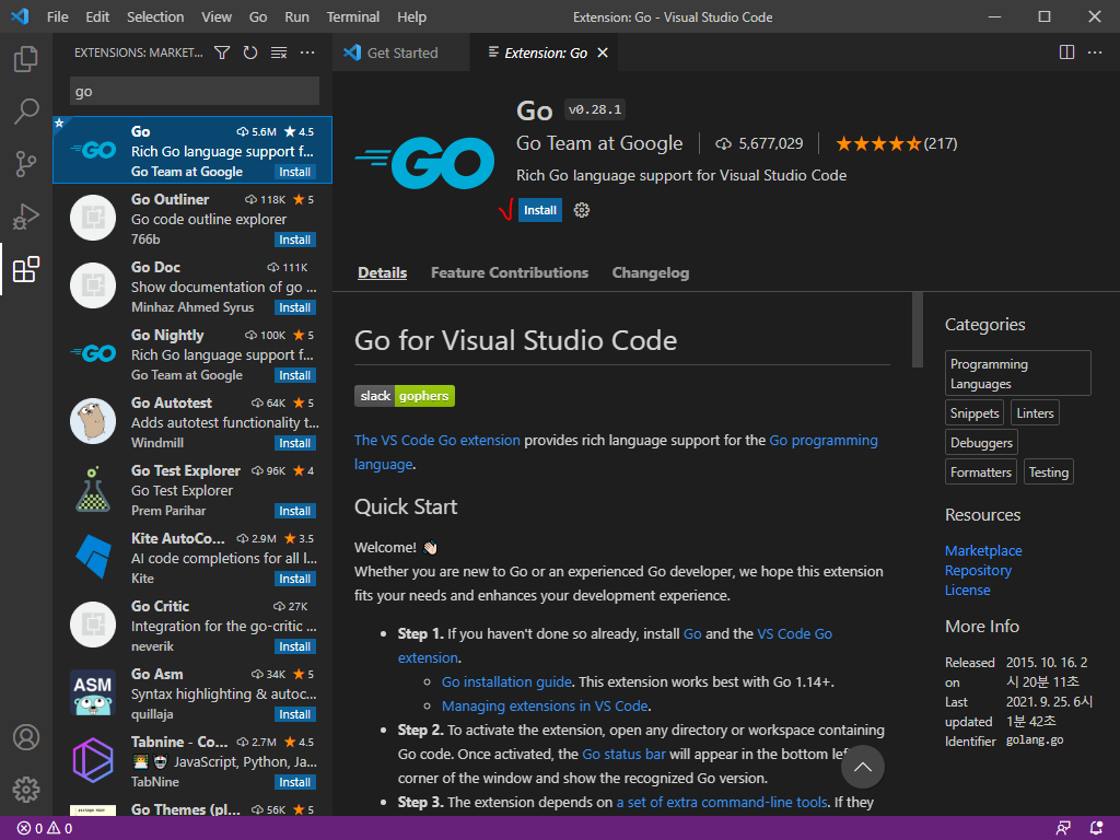 저는 그 중에서 Visual Studio Code로 Golang을 사용하려고 합니다.