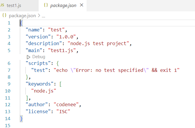 기본값은 ISC에서 허용한 free software licensenpm init 과정이 완료되면, package.json파일이 생성됩니다.