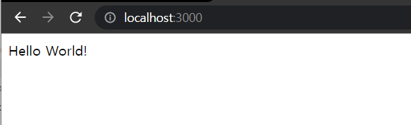 const express = require('express'); const app = express(); const port = 3000; // 서버 포트 번호 , 변경 가능 //클라이언트에서 http요청 메소드 중 get을 이용해서 'host:port'로 요청을 보내면 실행되는 라우트 app.get('/', (req, res) => { res.send("Hello World!"); }); //app.listen() 함수를 사용해서 서버를 실행 app.listen(port, () => { console.log('server running. http:\\localhost:${port}'); });서버를 실행하면!