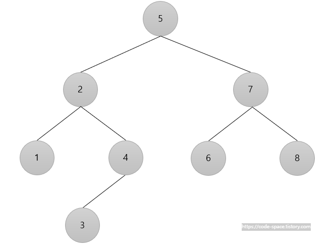 위의 트리를 중위 순회를 하면 {1, 2, 3, 4, 5, 6, 7, 8} 순으로 방문하게 됩니다.