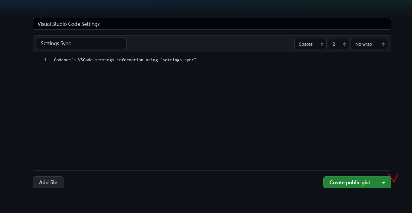 Create public gist를 클릭하여 생성합니다.