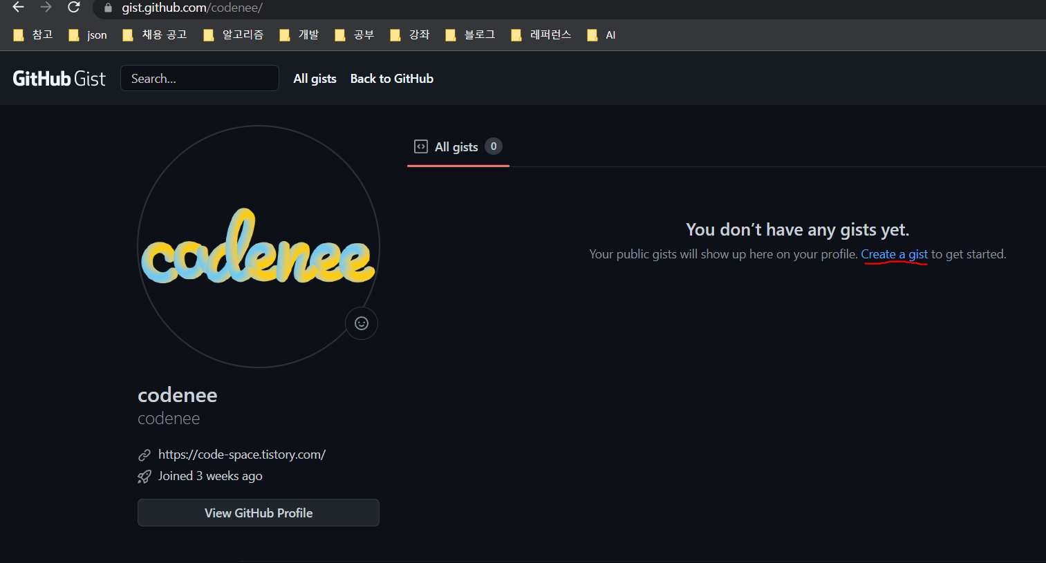 GitHub Gist 페이지에 들어갑니다.