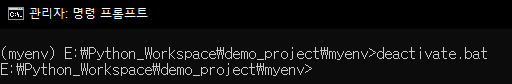"[가상 환경 저장 경로]\scripts " 에 있는 deactivate.bat 을 실행하면 됩니다.