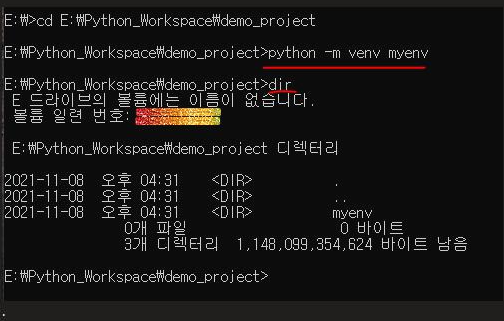명령어 : " python -m venv [저장할 가상 환경 이름] "