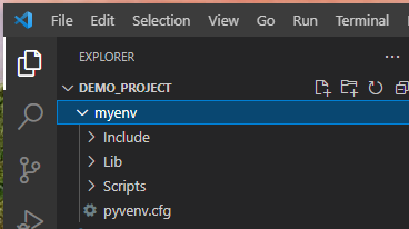6. Visual Studio Code에서 프로젝트를 Open하면 가상환경 폴더가 함께 있는 것을 확인 할 수 있습니다.