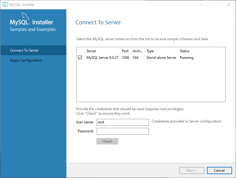 mysql setup13 비밀번호 입력해서 Connect 확인합니다.