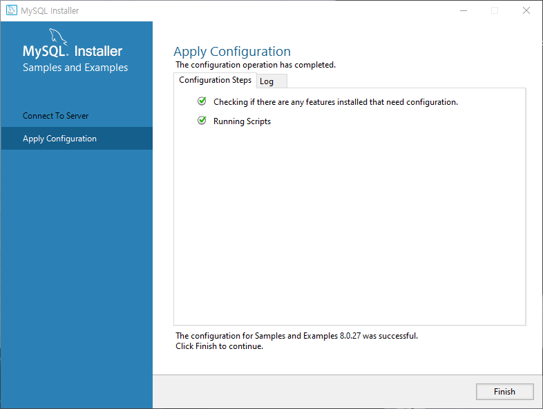 mysql setup2 설치가 완료된 항목들이 나옵니다.