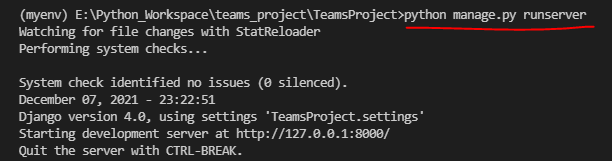 (1)Terminal 에서 현재 경로를 django 프로젝트를 생성한 위치로 이동합니다.