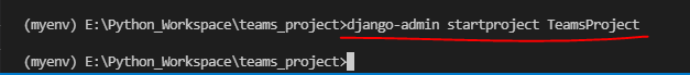 "django-admin startproject 프로젝트명" 을 입력해서 프로젝트를 생성합니다.