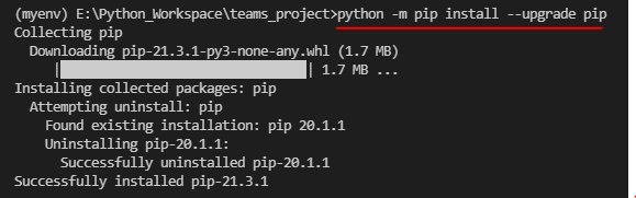 Terminal 에서 "python -m pip install --upgrade pip" 명령어를 입력합니다.
