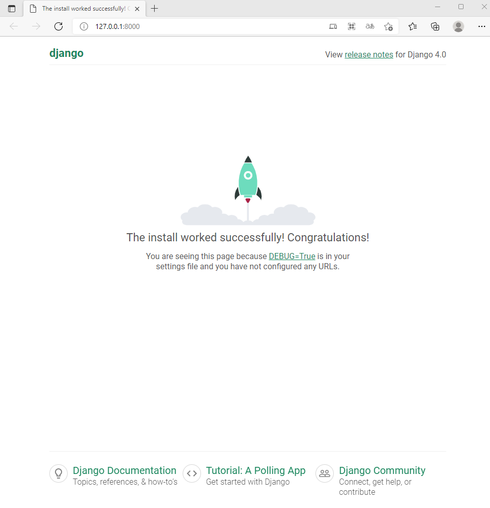 (5) ctrl + http://127.0.0.1:8000 을 클릭( or 웹 브라우저에 url 입력) 합니다.