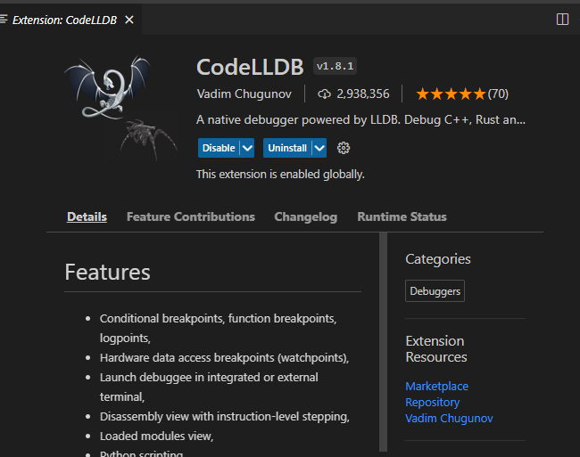 CodeLLDB 확장 모듈 설치