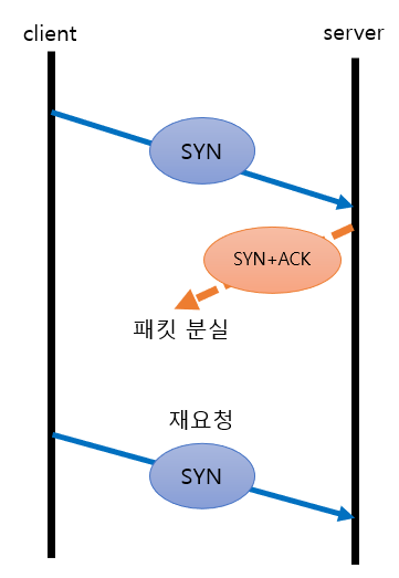 client가 보낸 SYN패킷에 대한 ACK를 받지 못하면 다시 SYN패킷을 보내게 된다.