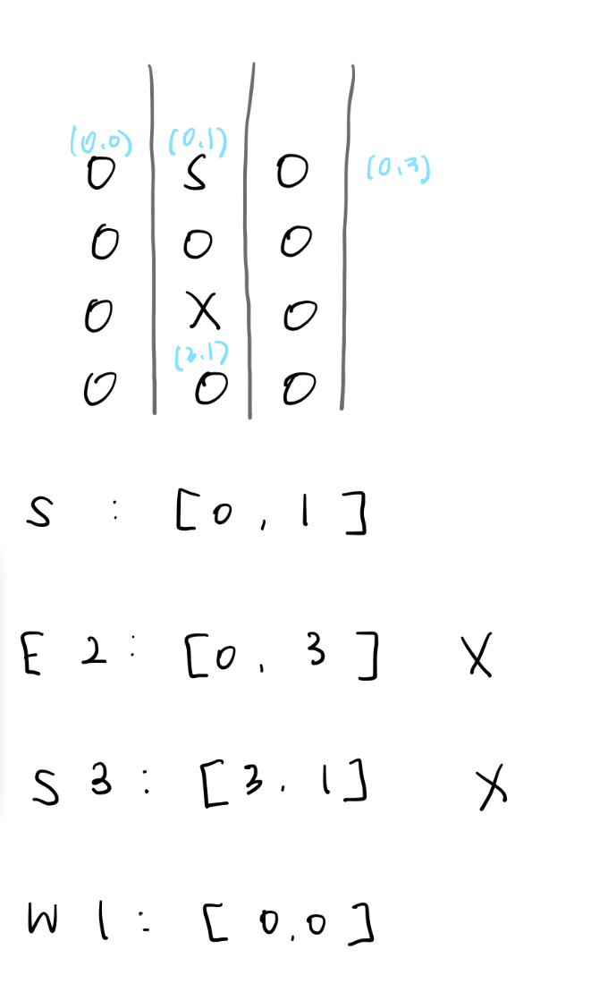 참고로, 코딩할때는 (0.0)부터 시작하는 좌표들이고, x y가 수학적 좌표랑 반대로 표현되어 다르게 생각해야 한다.