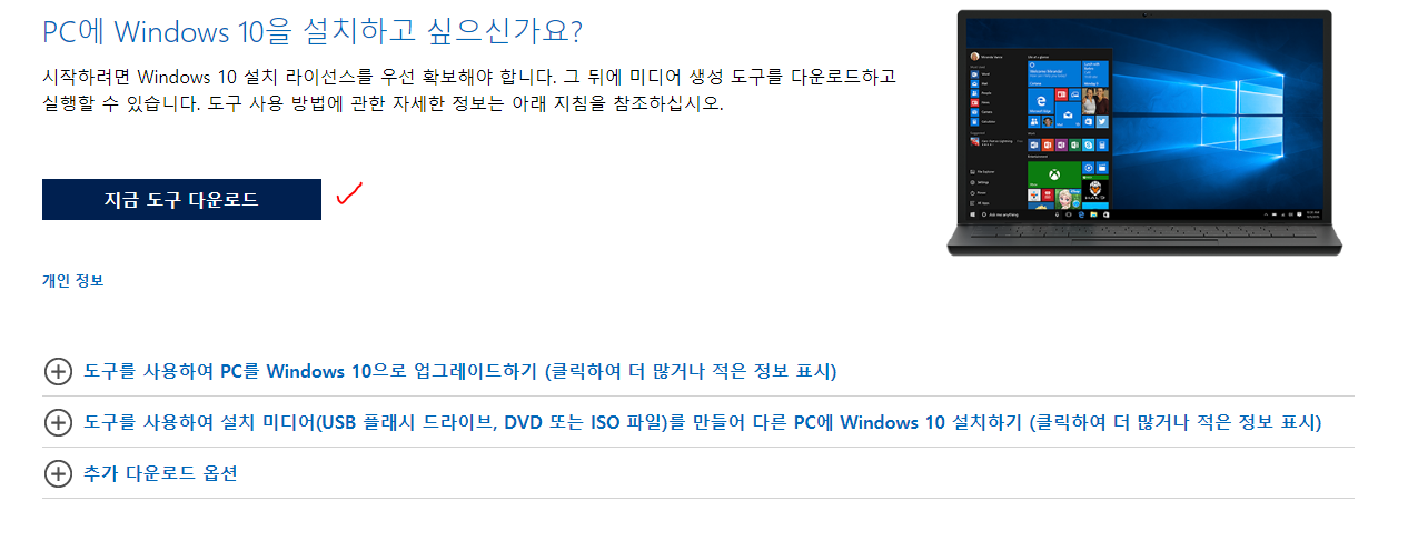 "지금 도구 다운로드"를 클릭하여 다운받습니다.