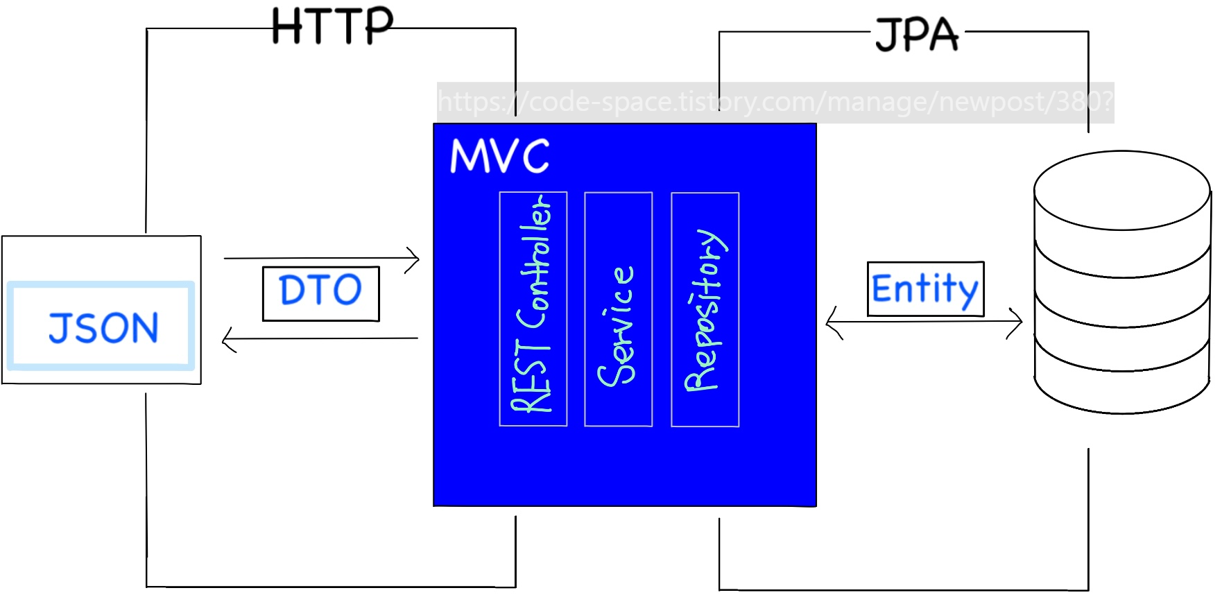 - HTTP (HpyterText Transfer Protocol) : 데이터를 주고 받기 위한 통신 규약MVC패턴을 적용하기 위해 아래의 파일 구조처럼 controller, dto, entity, responsitory, service로 나누어서 진행합니다.
