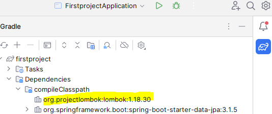 Gradle탭을 클릭하면 롬복이 포함된 것을 확인할 수 있습니다.