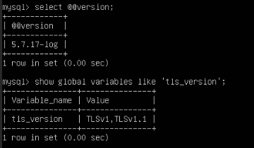 select @@version; show global variables like 'tls_version';