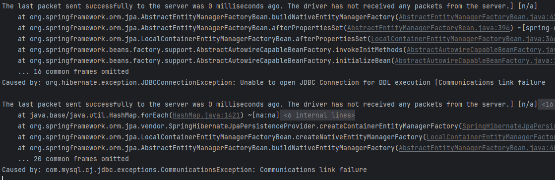 Connector버전을 5.7로 낮추고 실행해도 다른 문제가 추가로 발생했다.