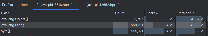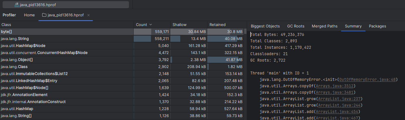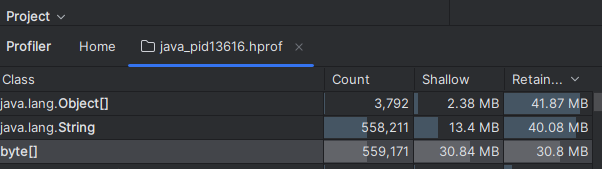인텔리제이로 hprof파일을 열면 메모리를 확인할 수 있습니다.