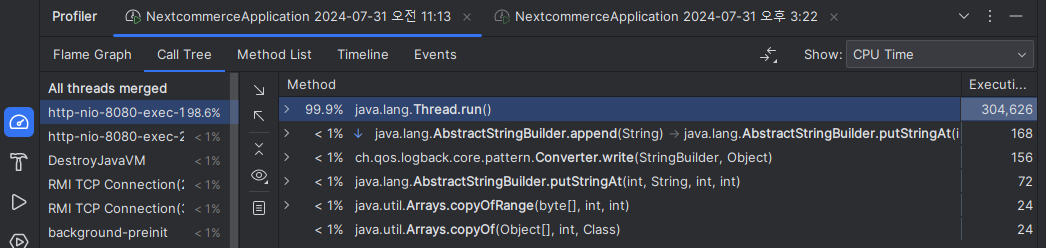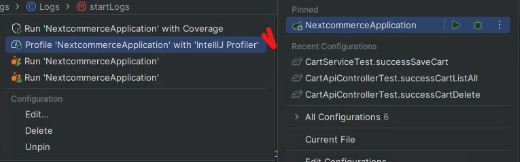 Profile ~ 버튼을 눌러 인텔리제이에서 제공하는 프로파일링으로 결과를 분석할 수 있습니다.