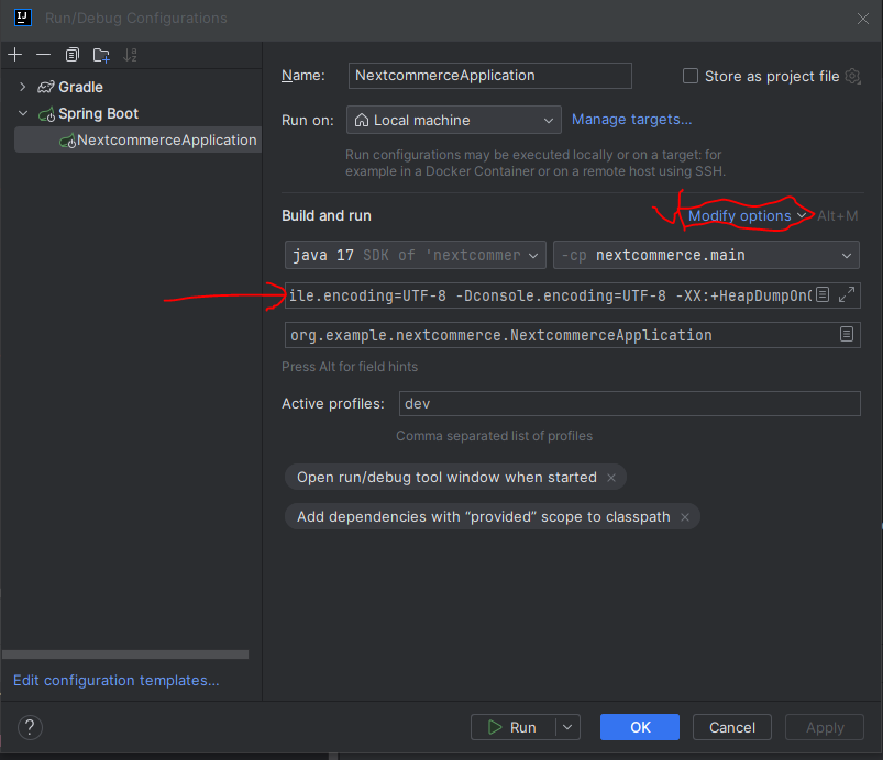 Edit Configurations > Modify options > add VM options