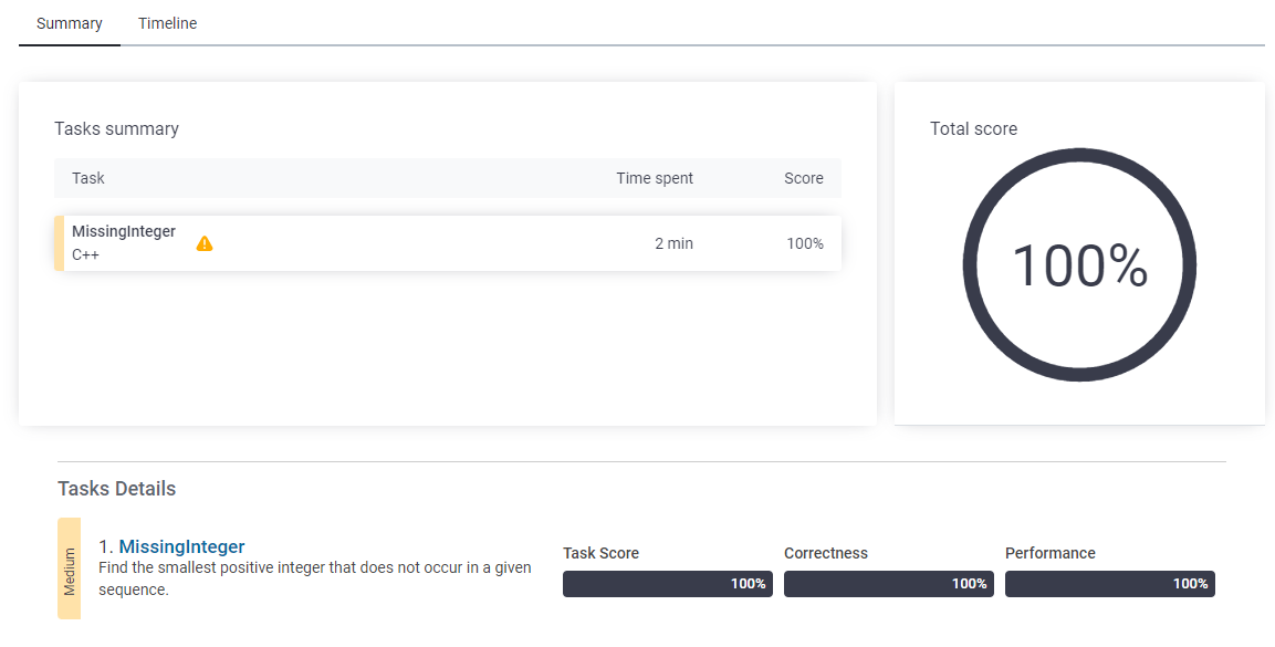 #include <algorithm> #include <vector> #include <iostream> int solution(std::vector<int> &A) { sort(A.begin(), A.end()); int index = A.size() - 1; if (A.at(index) < 0) return 1; int min = 1; for (int i = 0; i < index + 1; i++) { if (min == A[i]) min++; } return min; } #define MaxCounters #ifdef MaxCounters int main() { std::vector<int> nVec = { 1,3,6,4,1,2}; std::cout << solution(nVec); return 0; } #endif