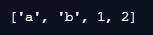 b = ["a", "b", 1, 2] print(b) print('\n')