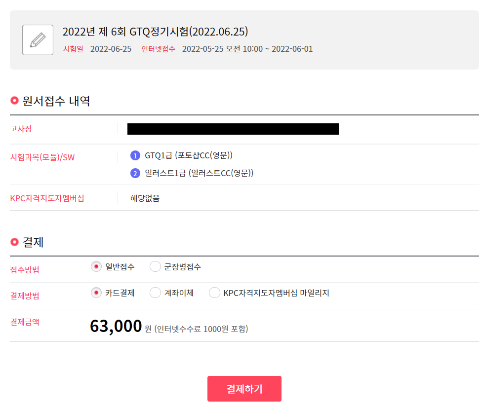 Illustator 자격증 시험인 GTQ 시험 접수를 하려고 합니다.