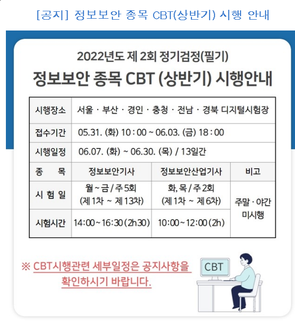 PBT시험이 있는 5/20-5/24 는 CBT시험을 진행하지 않으니 홈페이지에서 자세한 일정 확인하시고 접수하시길 바랍니다.