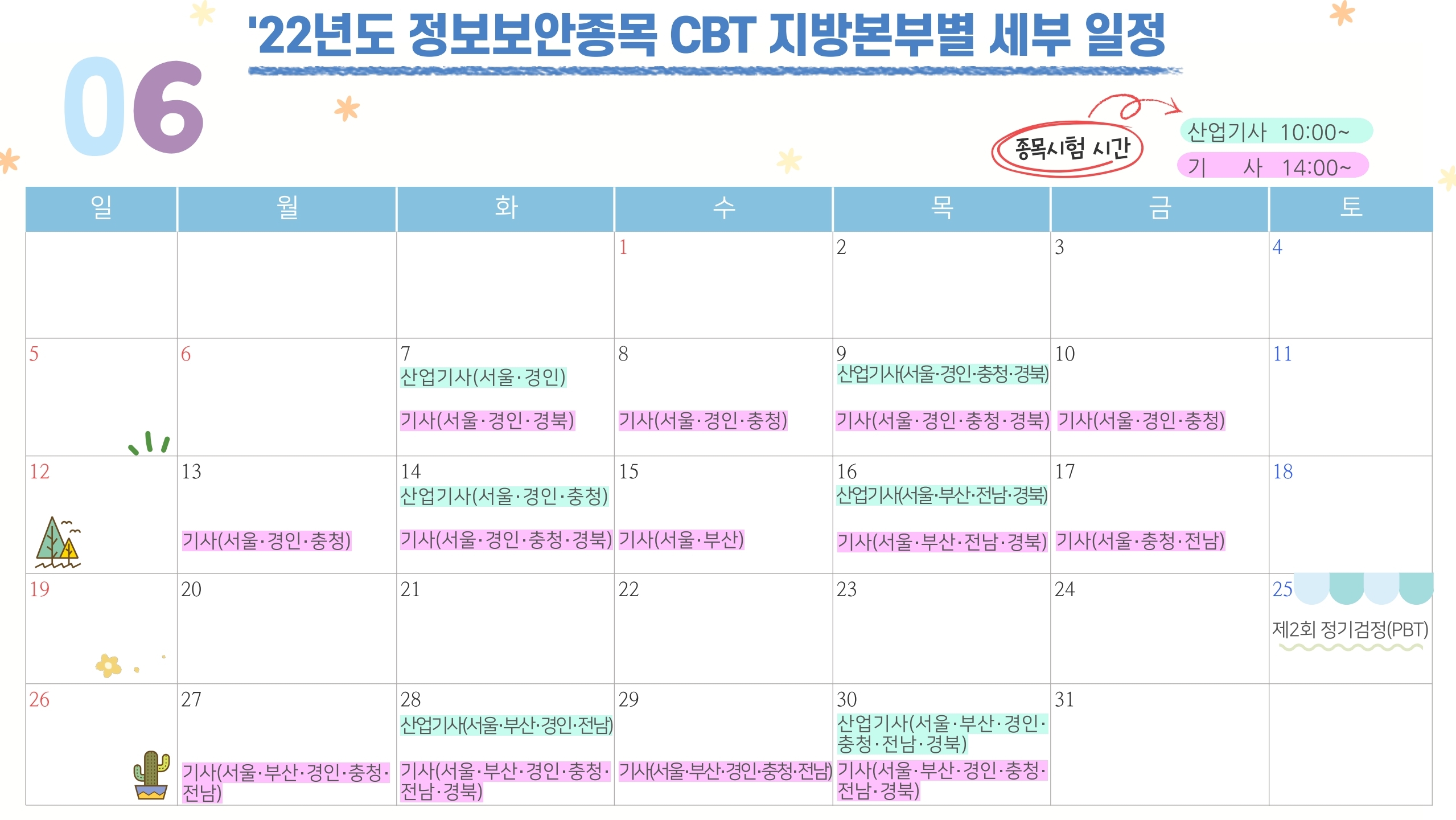 PBT시험이 있는 5/20-5/24 는 CBT시험을 진행하지 않으니 홈페이지에서 자세한 일정 확인하시고 접수하시길 바랍니다.