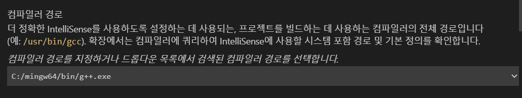 c++ 를 사용하는 경우 : C:\mingw64/bin/g++.exe
