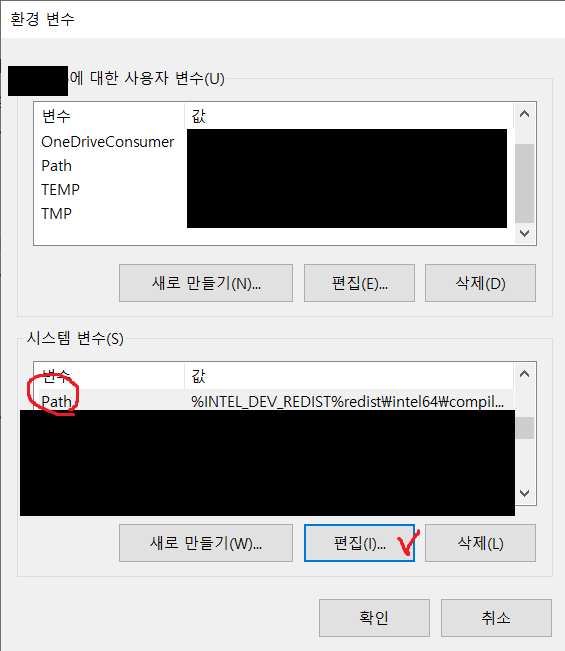 시스템 변수 "Path" 항목을 지정 후 "편집" 버튼을 클릭합니다.
