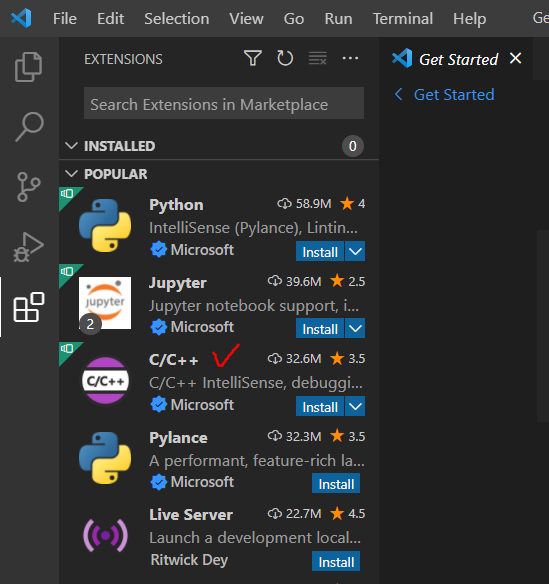 1. c/c++확장 프로그램 설치