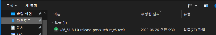 저는 운영체제가 64bit라 "x86_64-posix-seh" 를 설치하겠습니다.